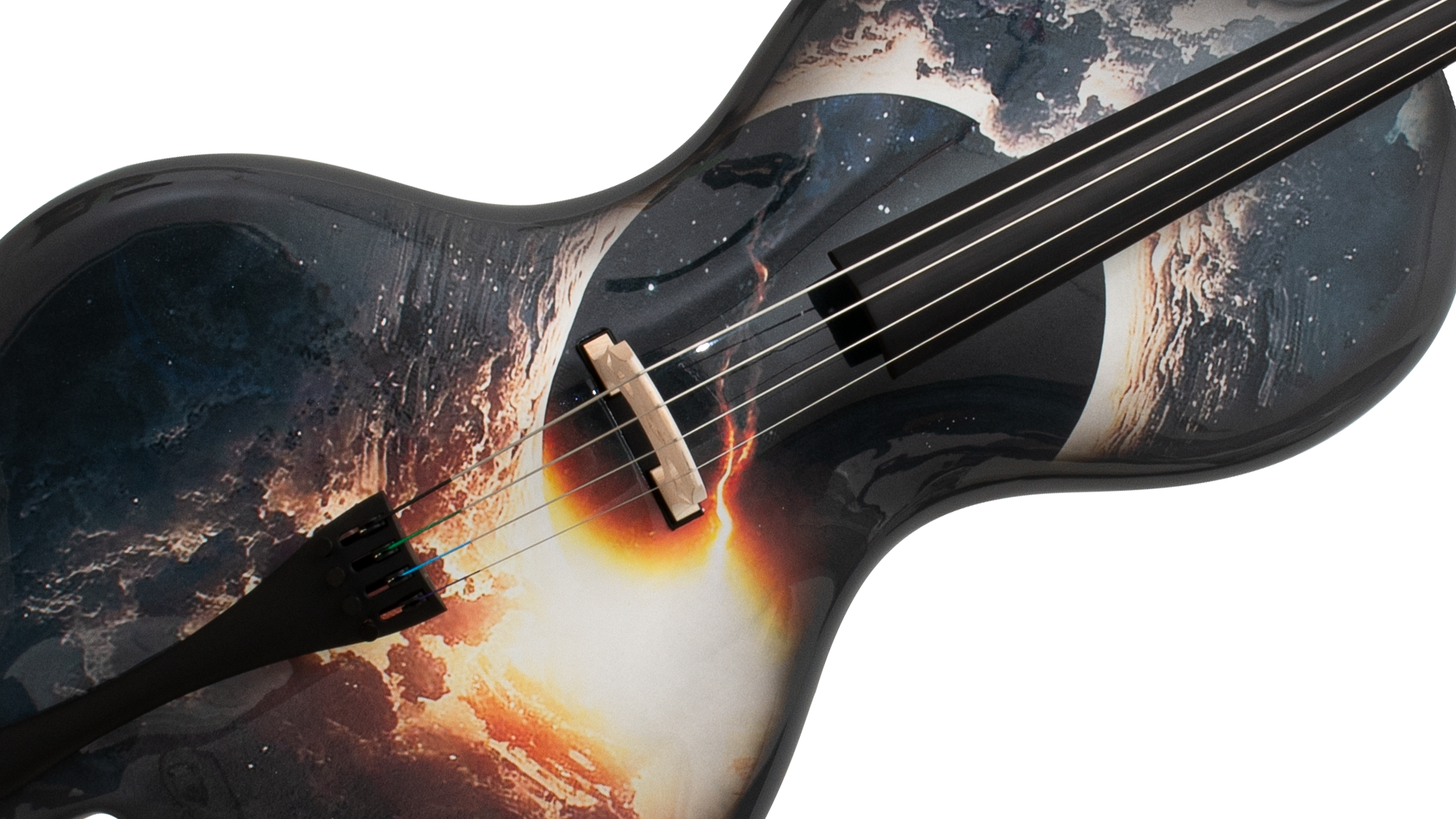 The Aeris electric cello shares the same elegant shape as the Ascera electric violin. While Ascera embodies classical beauty, Aeris expands this series into a new realm to cosmic grandeur. Designed with bold, interstellar patterns, its finish draws from the mesmerizing imagery of the universe - glowing nebulae, drifting stardust, and the vast, infinite unknown. Influenced by the cinematic grandeur of Interstellar, Aeris transforms cosmic beauty into a visual and musical experience, where each stroke of the bow resonates like a journey through space.